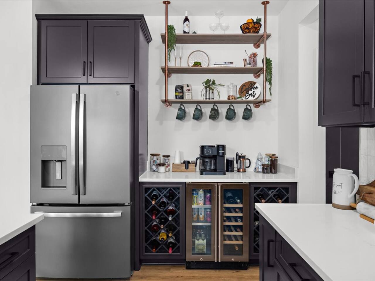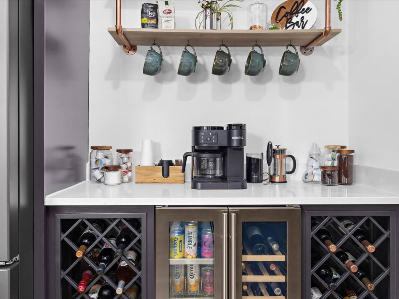 🍷 Wine fridge and a fully stocked coffee and tea bar