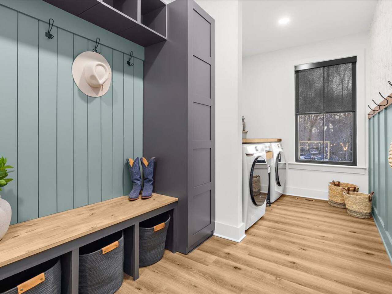 🧺 Washer and dryer area with iron/ironing board