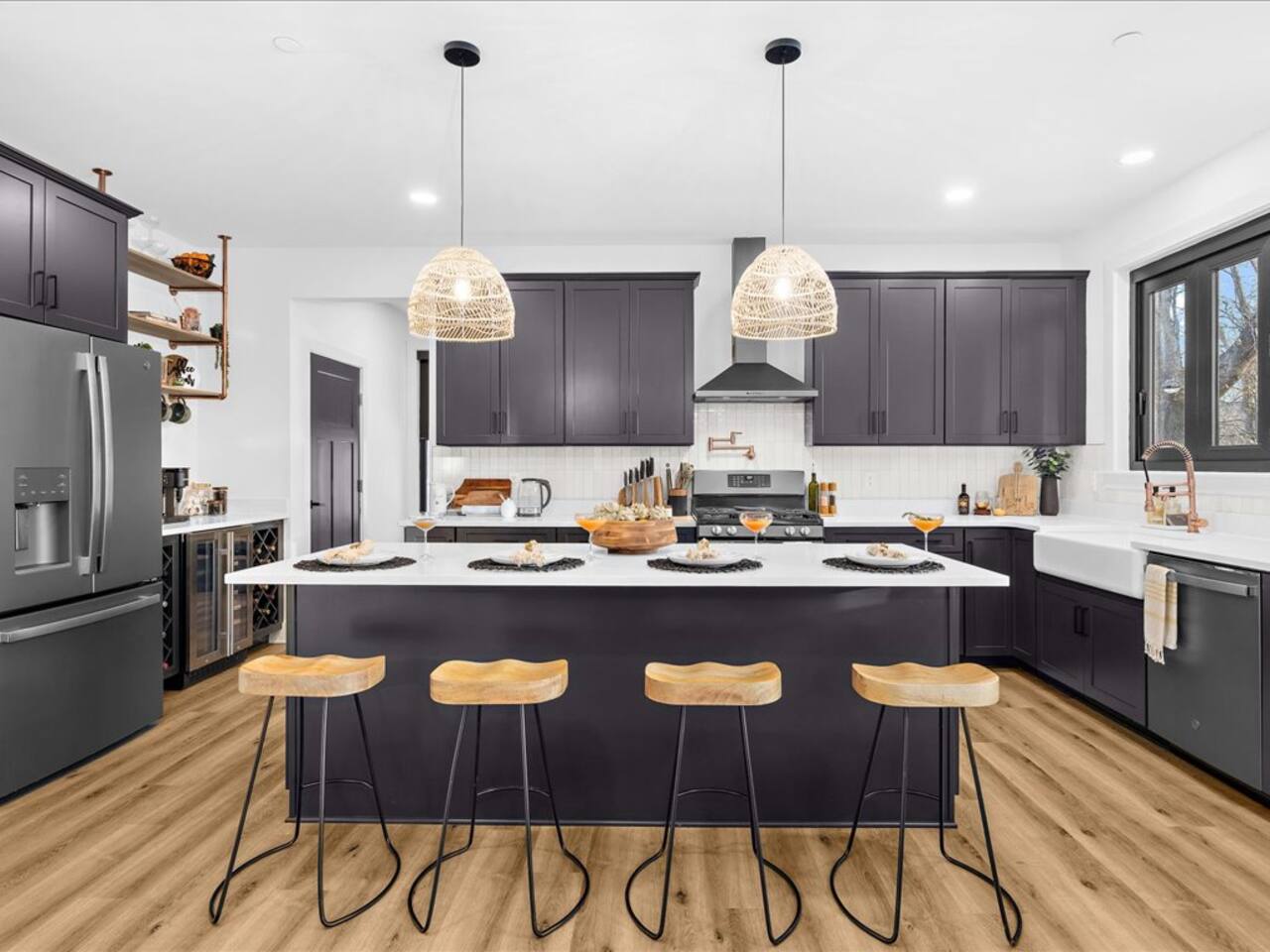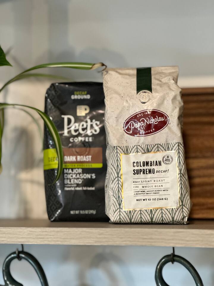 ☕ 2 separate luxurious coffee bars, fully stocked and equipped with a Keurig duo, French press, etc. at each (1 on main level and 1 in basement)