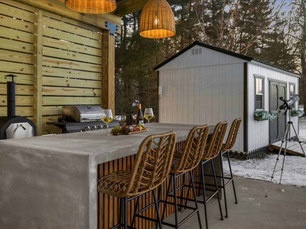 🍔 Outdoor kitchen with Blackstone grill, pizza oven, fridge, etc.